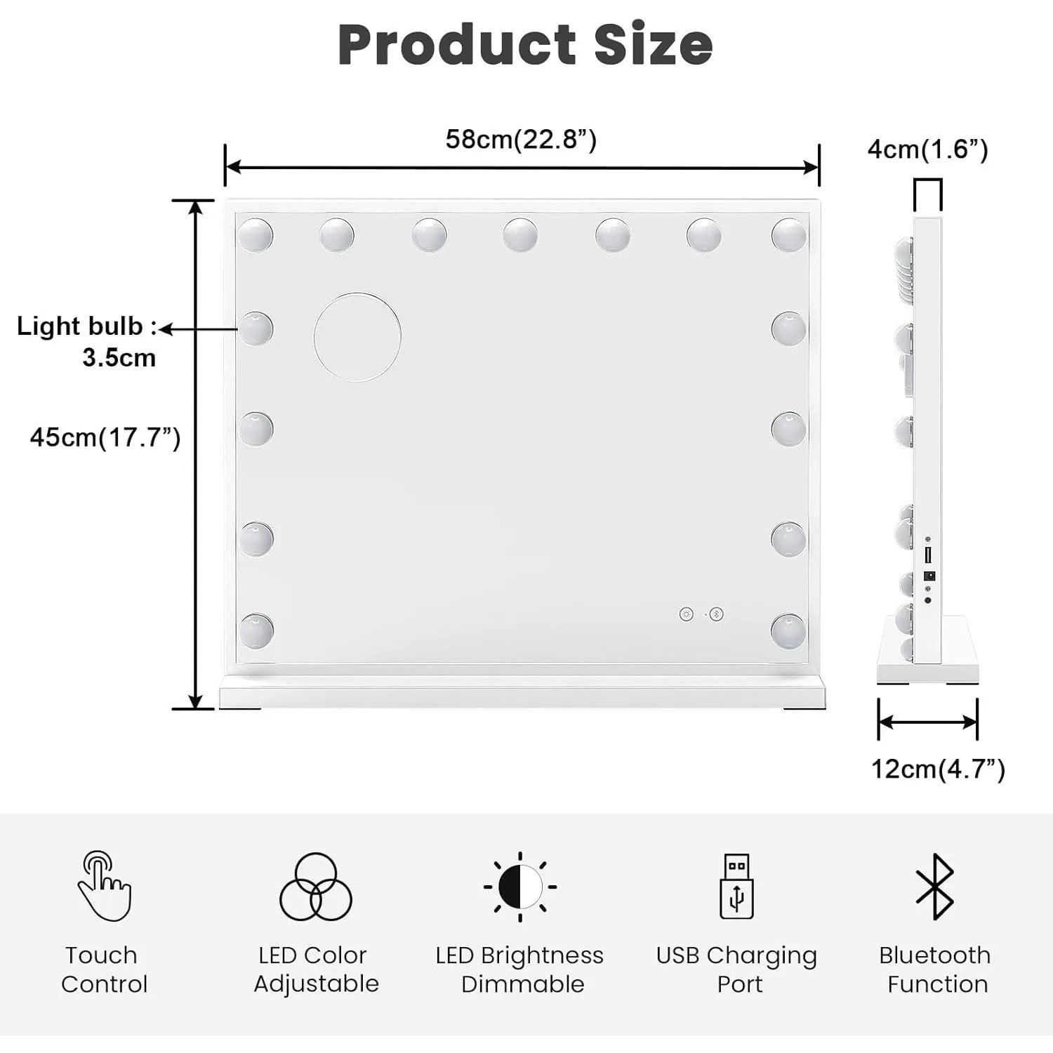 Looking for a vanity mirror that does more than just reflect? This Hollywood-style vanity mirror comes with a built-in Bluetooth speaker, so you can easily connect your phone and enjoy your favourite tunes while you get ready. Plus, there’s a handy USB port on the side to charge your phone or other USB devices—keeping you powered up and ready to go.