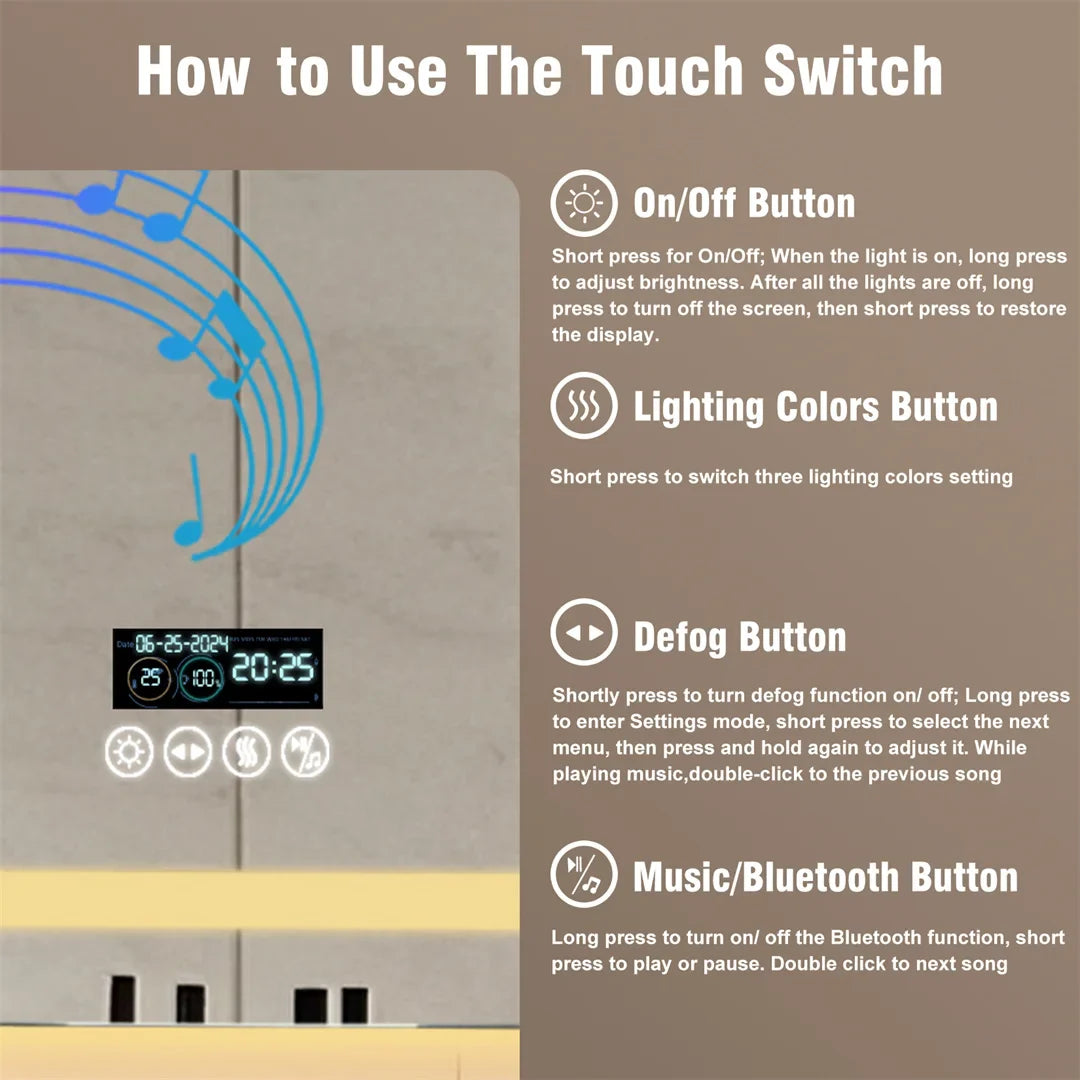 Features: With Bluetooth Speaker, Touch Sensor, Anti-Fog